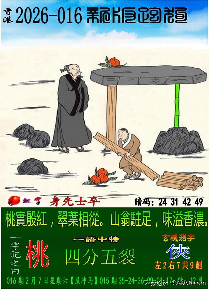 016期新版跑狗一字記之曰:【桃】 玄機測字:《俠》 一語中特:四分五裂
