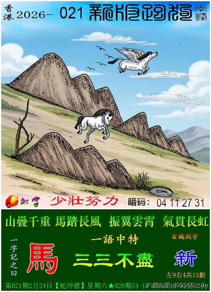 021期新版跑狗一字記之曰:【馬】 玄機測字:《新》 一語中特:三三不盡