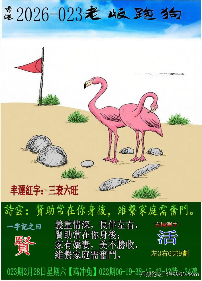 023期老版跑狗一字記之曰:【賢】 詩雲:賢助常在你身後,維繫家庭需奮鬥。