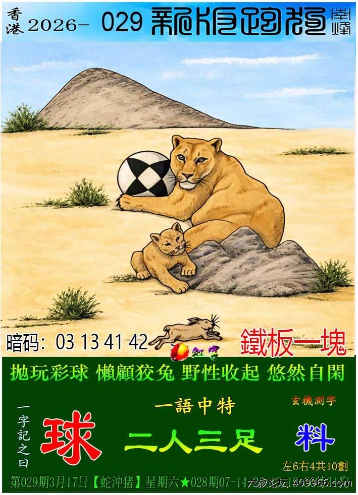 029期新版跑狗一字記之曰:【球】 玄機測字:《料》 一語中特:二人三足