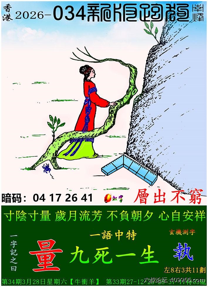 034期新版跑狗一字記之曰:【量】玄機測字:《執》 一語中特:九死一生